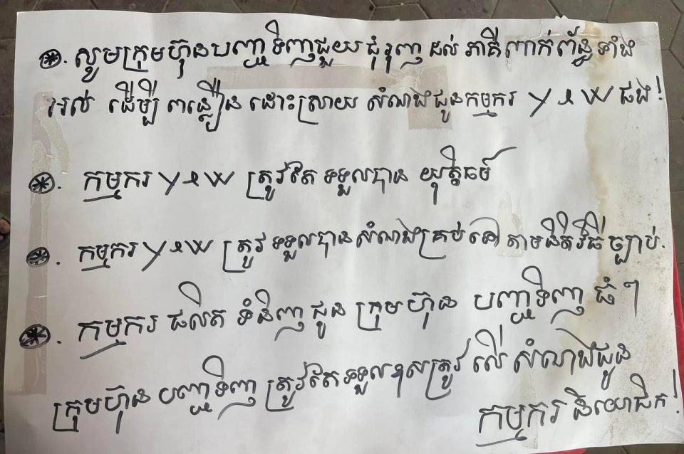 ក្រុមតំណាងកម្មករ ១៦ និងកម្មករ និយោជិតនៃរោងចក្រ Y&W Garment Co.,Ltd បានអំពាវនាវ និងប្តឹងទៅអ្នកបញ្ជាទិញធំៗដេីម្បីឲ្យជួយរកយុត្តិ ធម៌ ឬស្វែករកការពិត