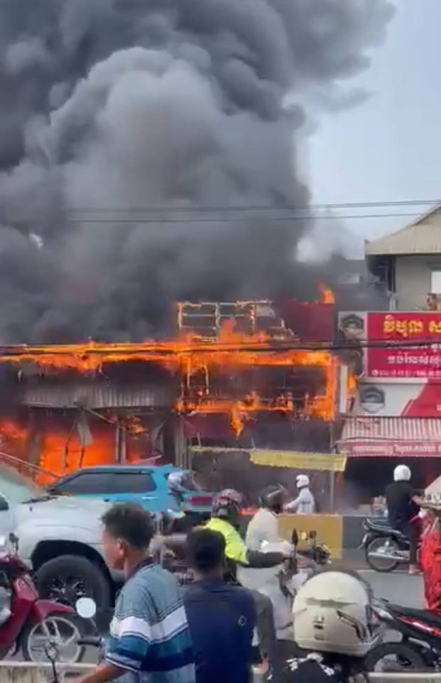ករណីភ្លើងឆេះផ្ទះប្រជាពលរដ្ឋនៅផ្លូវជាតិលេខ៤ ក្នុងខណ្ឌពោធិ៍សែនជ័យ សមត្ថកិច្ចប្រើទឹកអស់១៥៦ឡានទើបអាចគ្រប់គ្រងបាន