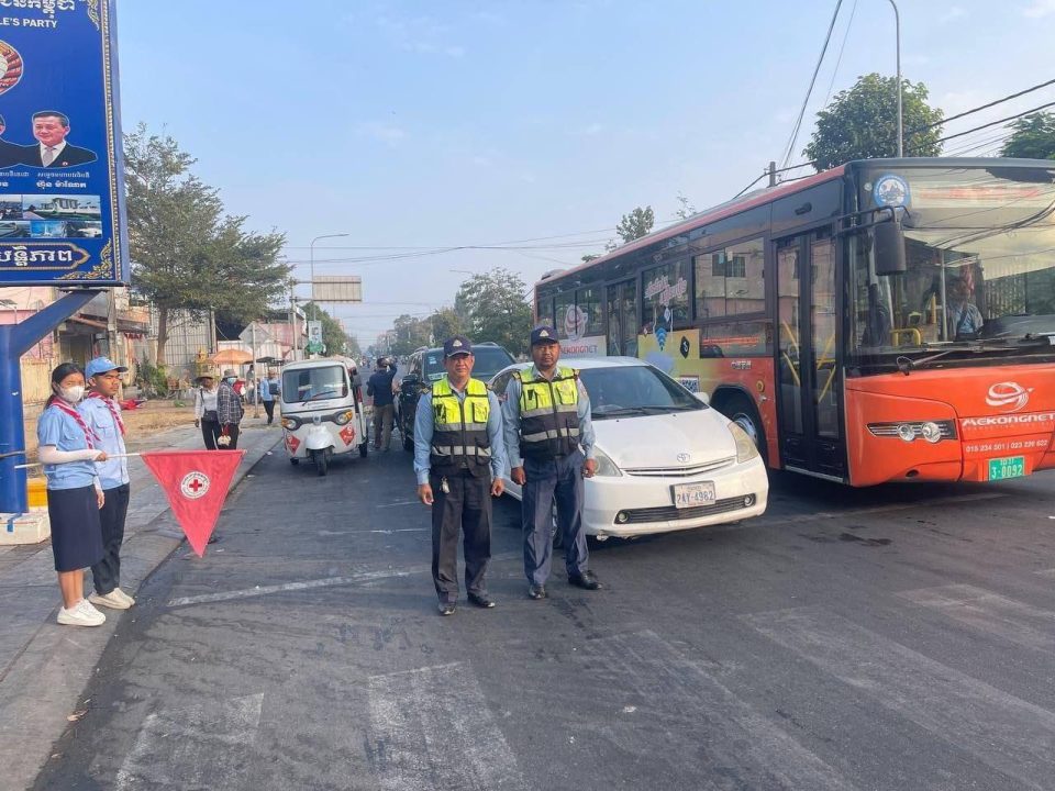 ឯកឧត្តម គង់ សោភ័ណ្ឌ ប្រធានគណៈកម្មាធិការសាខាកាកបាទក្រហម កណ្តាលដឹកនាំយុវជនផ្សព្វផ្សាយសុវត្ថិភាពចរាចរផ្លូវគោក