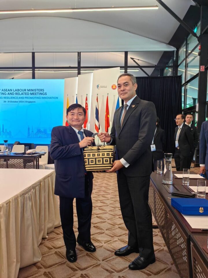 សិង្ហបុរី)៖ ឯកឧត្តម ហេង សួរ រដ្ឋមន្រ្តីក្រសួងការងារ និងបណ្តុះបណ្តាលវិជ្ជាជីវៈ បានដឹកនាំប្រតិភូកម្ពុជាចូលរួមកិច្ចប្រជុំរដ្ឋមន្រ្តីការងារអាស៊ានលើកទី២៨ (28th ASEAN Labour Ministers’ Meeting – ALMM) និងកិច្ចប្រជុំពាក់ព័ន្ធ ក្រោមមូលបទ “ការពង្រឹងភាពធន់ និងការលើកកម្ពស់នវានុវត្តន៍” នាថ្ងៃទី៣០-៣១ ខែតុលា ឆ្នាំ២០២៤ នៅក្នុងប្រទេសសិង្ហបុរី ដែលដឹកនាំដោយរដ្ឋមន្រ្តីក្រសួងហត្ថពលកម្មសិង្ហបុរី និងមានការចូលរួមពីរដ្ឋមន្ត្រី/ប្រធានប្រតិភូក្រសួងការងារនៃរដ្ឋជាសមាជិកអាស៊ាន, រដ្ឋមន្រ្ដីការងារទីម័រឡេស្ដេ ក្នុងឋានៈជាអ្នកសង្កេតការណ៍ និងឯកឧត្តមអគ្គលេខាធិការអាស៊ាន។